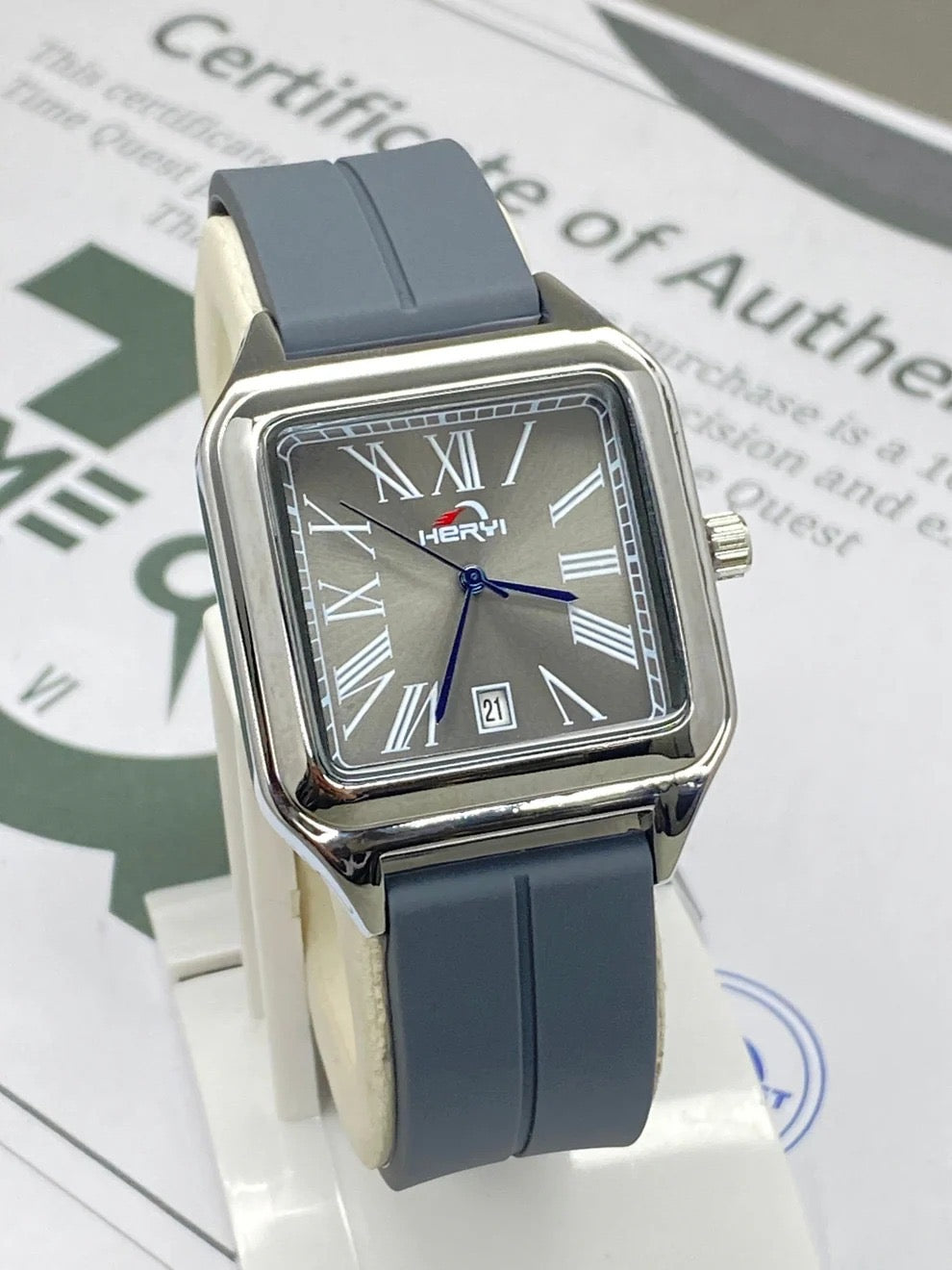 Design Style: This is a classic square-dial watch featuring a modern aesthetic with slightly rounded corners, often likened to vintage luxury dress watches.