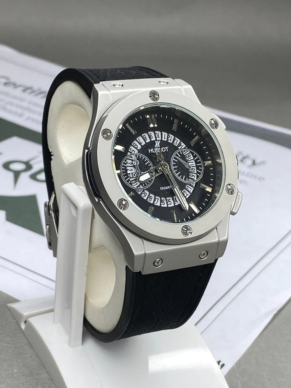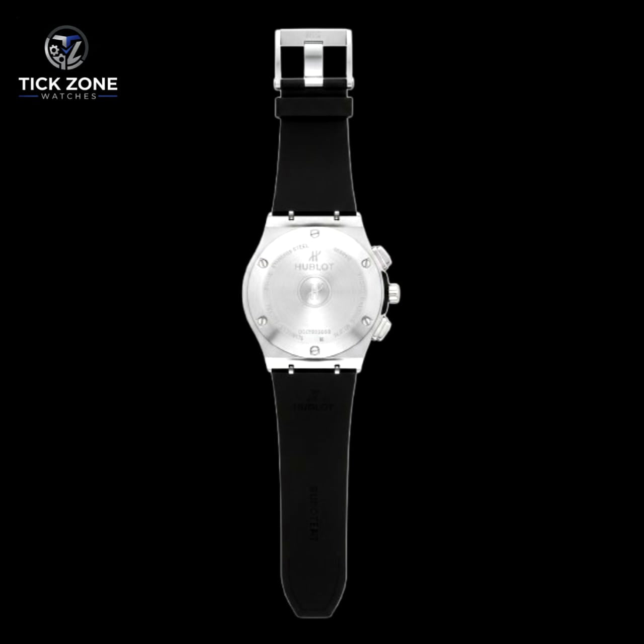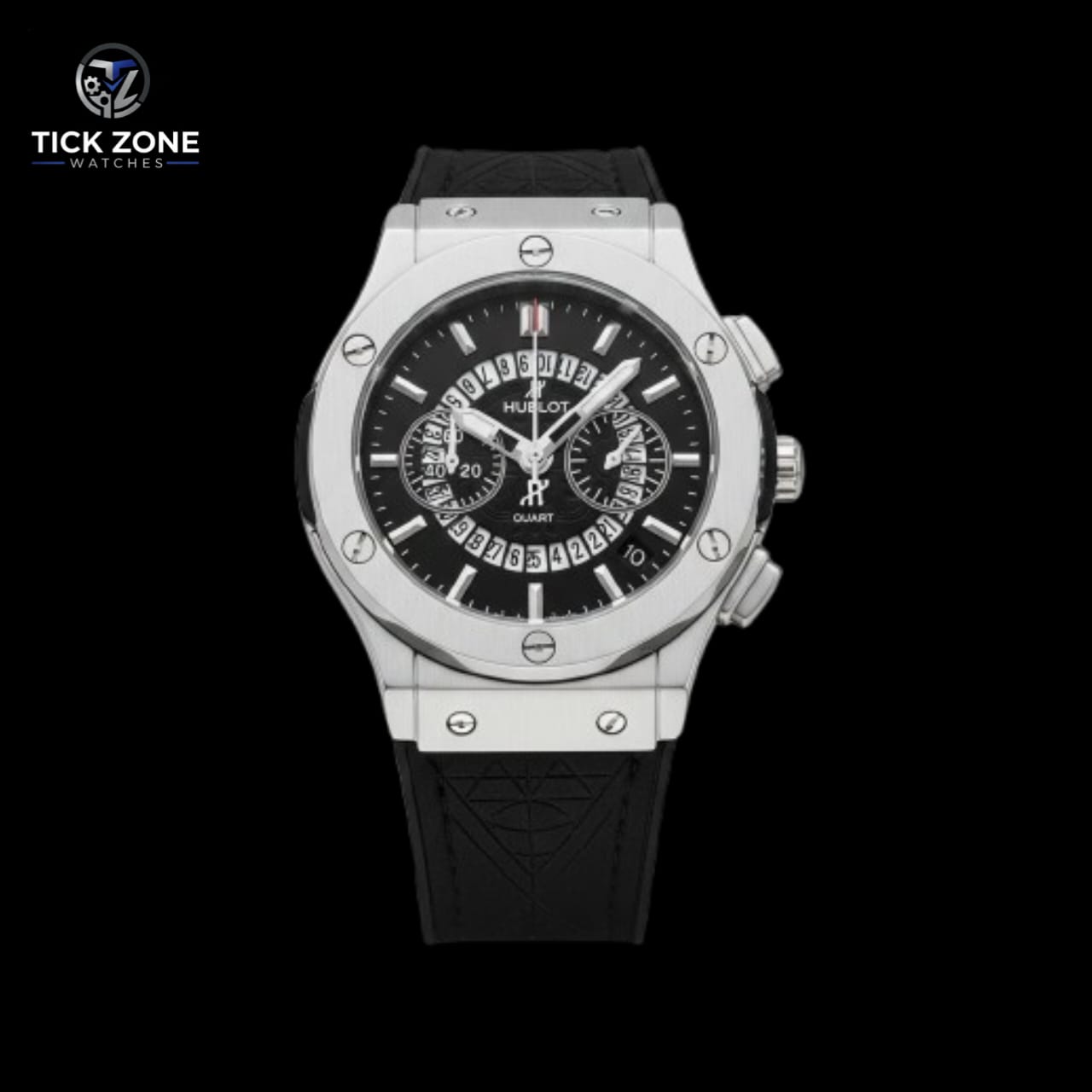 Design Style: This watch is a tribute to the iconic Hublot Big Bang collection, featuring its signature industrial look with an octagonal-style bezel held by 6 visible H-shaped screws.